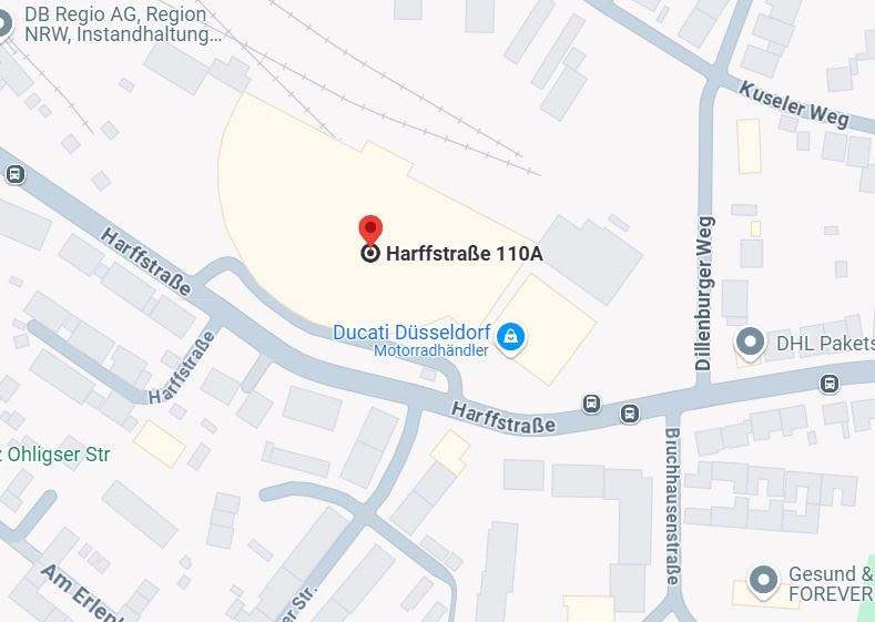 U79, U77 oder U74 Richtung Holthausen, Benrath (ca. 7-10 Minuten) am Provinzuialplatz aussteigen, links Richtung Harffstr./Kölner Landstraße (zu Fuß ca. 8-10 Minuten) oder Bus 723 Richtung Eller Mitte, Einstieg Haltestelle Provinzialplatz (auf der Kölner Landstraße Nähe Harffstr.) Ausstieg Haltestelle Ohligser Straße